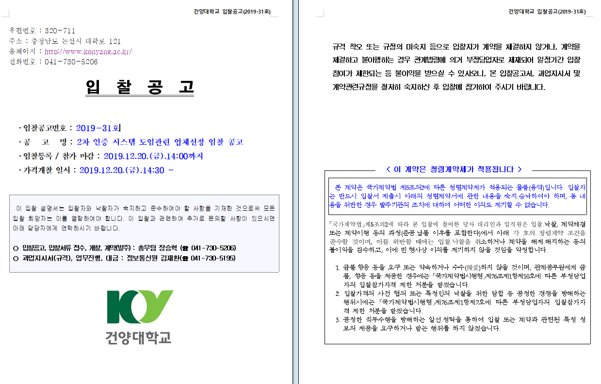 | 제목 | 2차 인증 시스템 도입관련 업체선정 입찰 공고 | ||||
