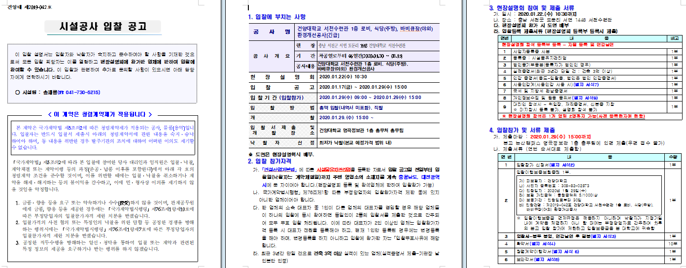 | 제목 | [2019-042호]건양대학교 서천수련관 1층 로비, 식당(주방), 바비큐장(야외) 환경개선공사[긴급] | ||||